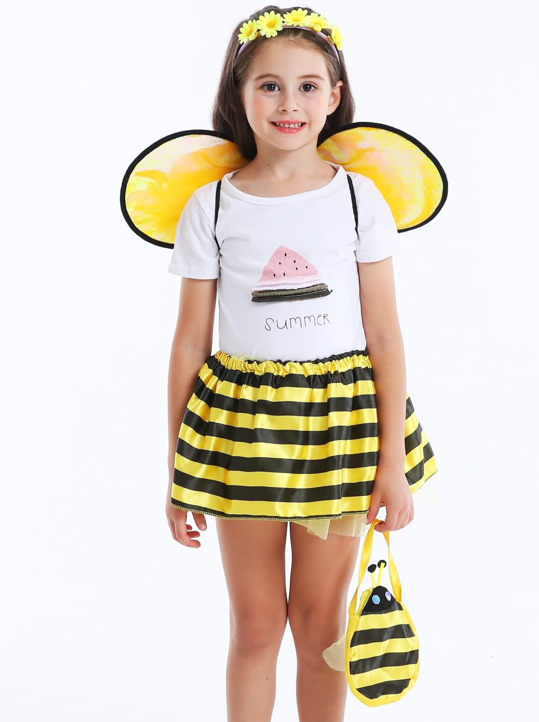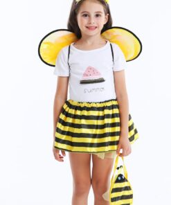 Your cutest honey bee is fly around the house, the garden!!! Our girls bee costume set includes a yellow wings, a black and yellow soft tutu, a flower headband and a adorable bumblebee bag. Your little one will love to dress up as a busy fairy bee