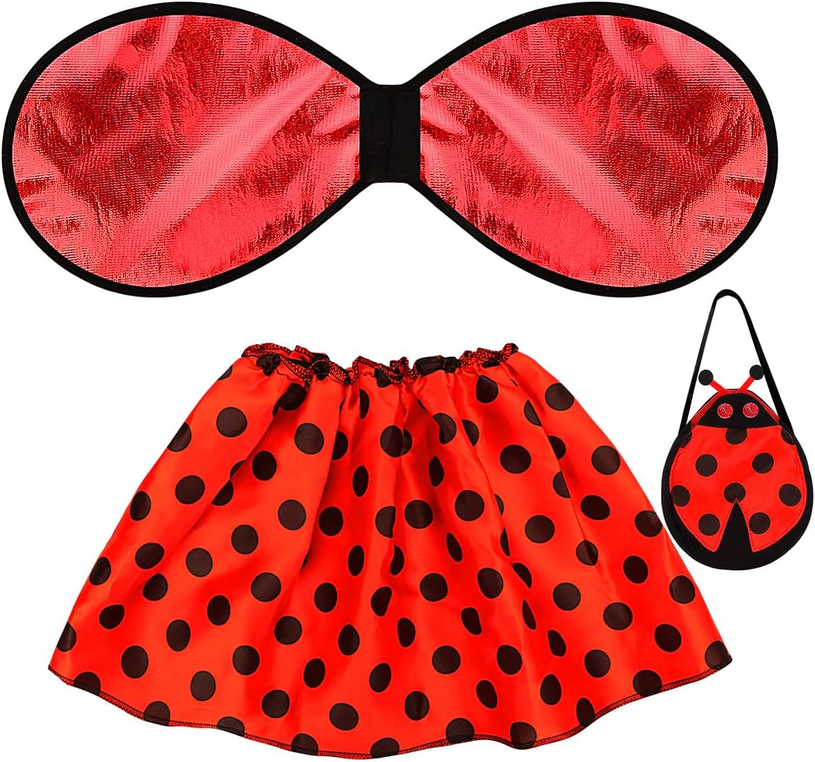 Your little girl will love lovely on this cute ladybug costume. The set includes a red wings, red and black skirt, a cute ladybug bag.Your little one is ready to flying in delight around the house