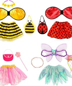 Aways fun to pretend! A set of fabulous princess role play costumes properly is every little girls dreams. Our girls dress up set includes 4 different roles — Lovely little ladybug, Cutest buzzy bee, Magical pink and purple fairy. A variety of costumes and accessories for your little one mixing and matching to create her own fancy look!
