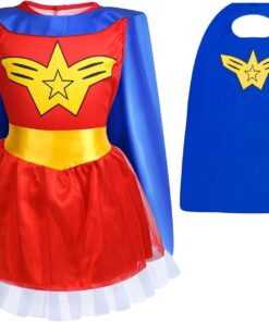 Jeowoqao Toddler Girls Dress up Costumes, Princess Dress Up Clothes for Little Girls, Kids Dress Up Pretend Play Set with Supergirl Princess Costumes Toy Gift for Girls Ages 3 4 5 6 Years