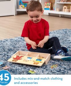 The 45 beautifully crafted painted wooden pieces include plenty of clothing and accessories that can be mixed and matched between each other to create different outfits.